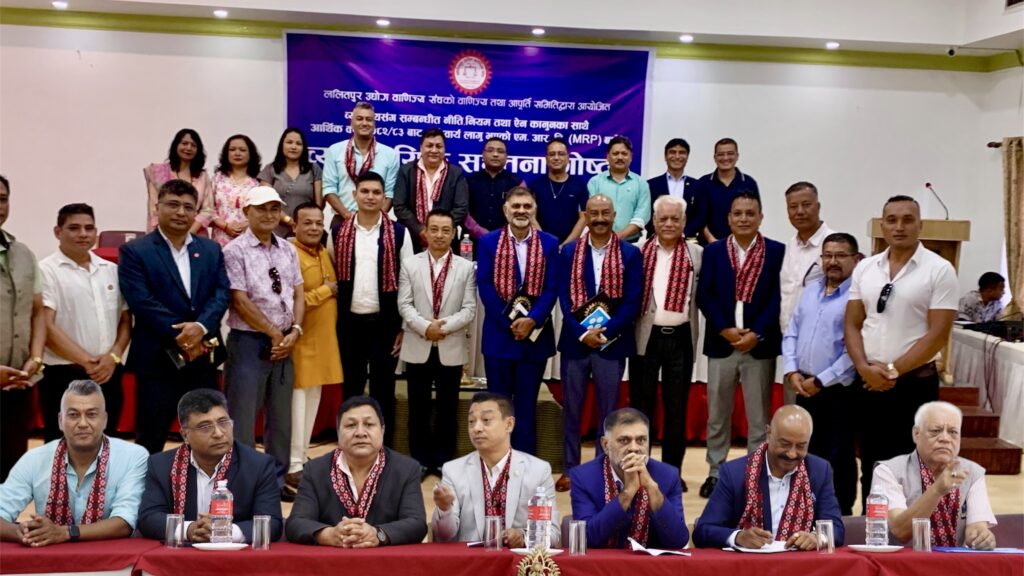 ललितपुर उद्योग वाणिज्य संघको वाणिज्य तथा आपूर्ति समितिद्वारा आयोजित व्यवसायसंग सम्बन्धीत नीति, नियम तथा ऐन कानुनका साथै आर्थिक वर्ष २०८२/८३ बाट अनिवार्य लागु भएको एम. आर. पि. (MRP) बारे व्यावसायिक सचेतना गोष्ठीमा सरकारले आर्थिक वर्ष २०८२/८३ देखि अनिवार्य रूपमा सबै वस्तुमा अधिकतम खुद्रा बिक्री मूल्य (एमआरपी) उल्लेख गर्नुपर्ने प्रावधान लागू